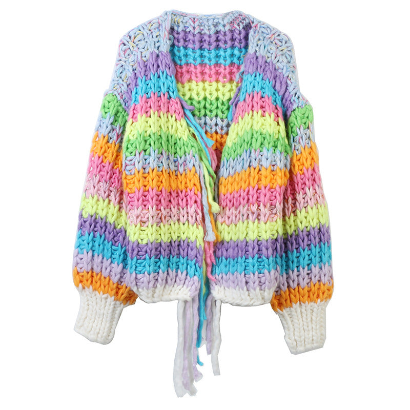 Cardigan en tricot stylé et chaud aux couleurs de l'arc-en-ciel