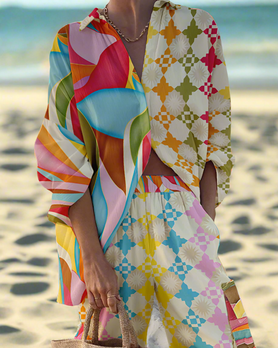 Combinaison assortie : Pantalons et hauts parfaitement assortis pour un look harmonieux.