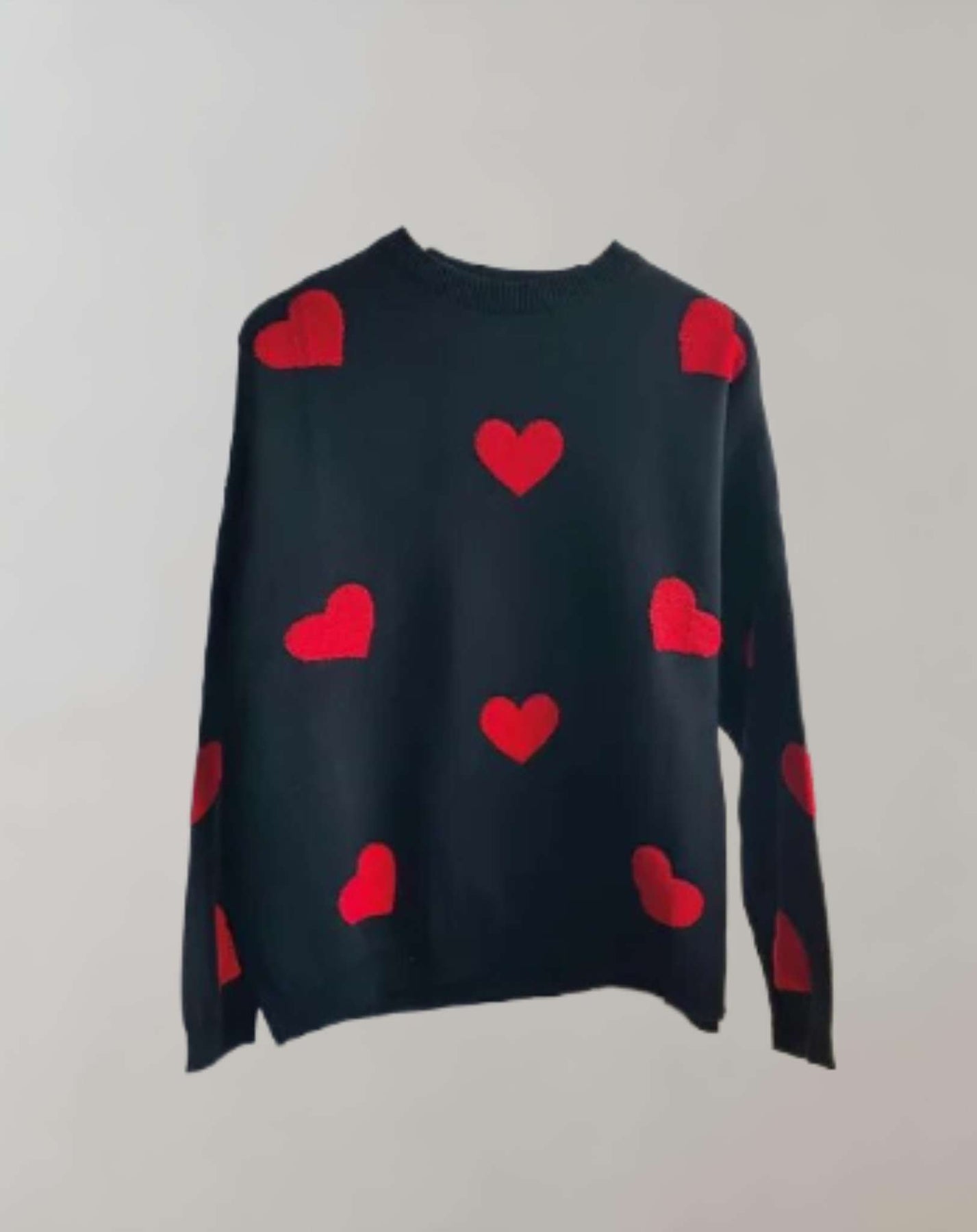 • 1x Vergie | Pull surdimensionné avec col rond et motif en forme de cœur