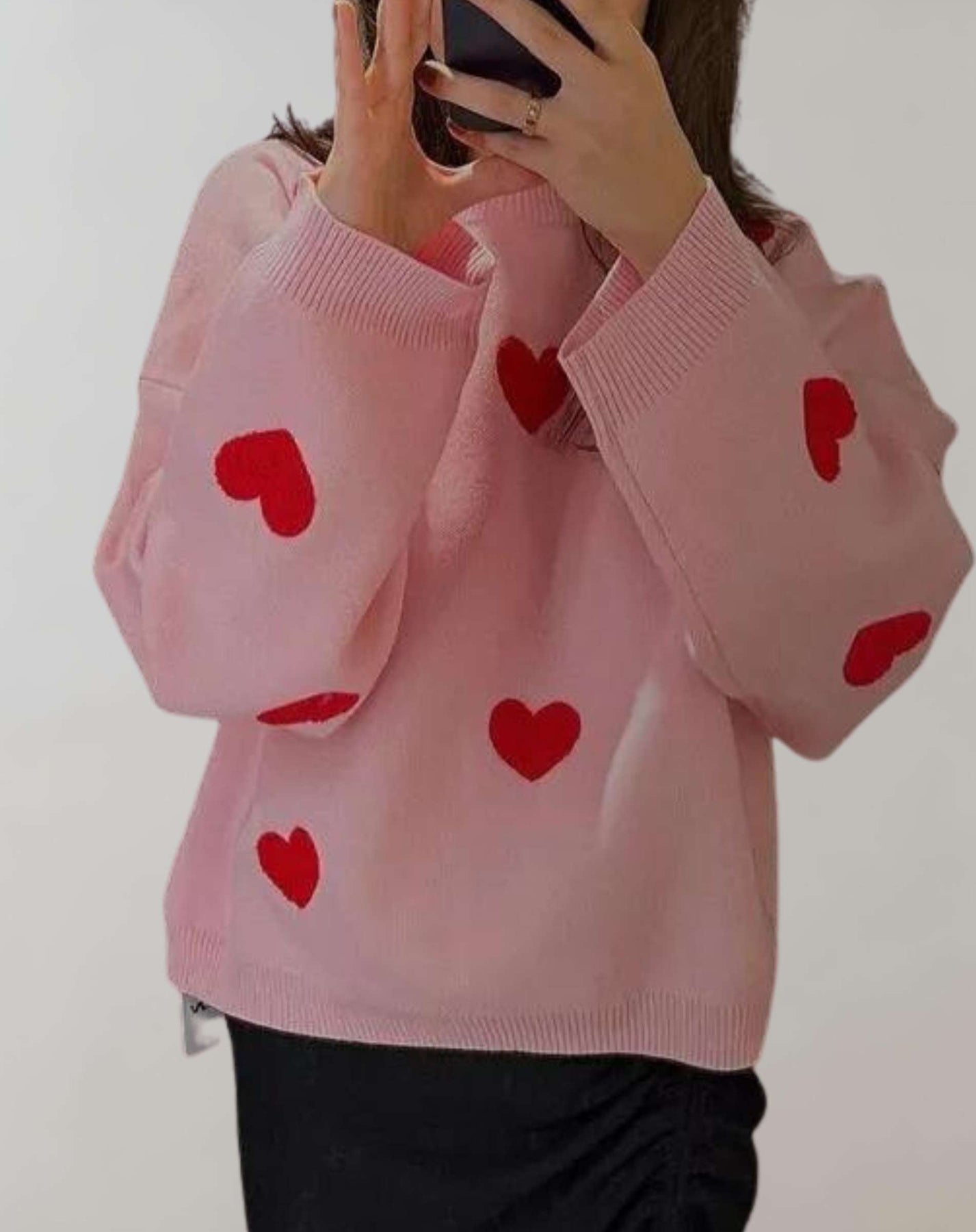 Vergie | Pull surdimensionné avec col rond et motif en forme de cœur