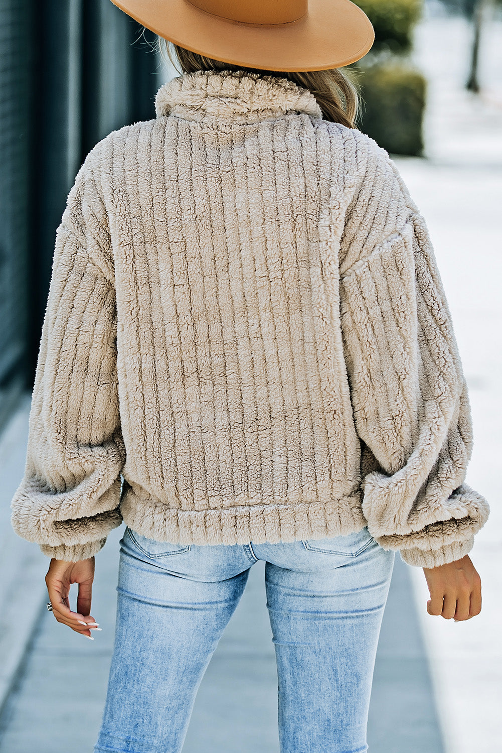 Veste en velours côtelé bleu-vert avec cordon de serrage, capuche et fermeture éclair